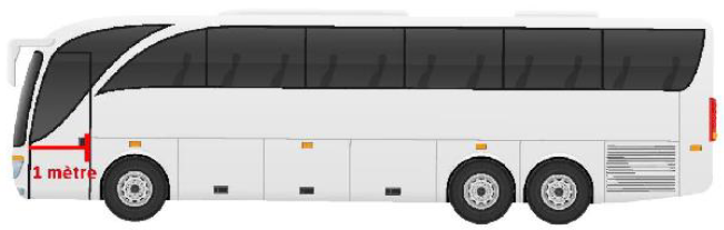 | 2 stickers sur le premier mètre avant du véhicule, soit 1 à gauche et 1 à droite et à une hauteur comprise entre 0.90 et 1.50 m du sol.