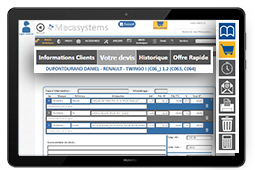 Depuis Mecasystems, sélectionnez le client et son véhicule, ajoutez les pièces, lubrifiants, pneus et accessoires ainsi que vos heures de main d’œuvre : le devis est créé ! C’est SIMPLE et RAPIDE !